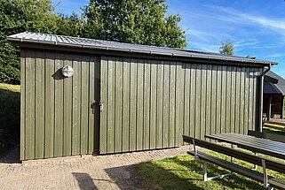 FDF spejederne hører til i Ungdomshuset, her har aktive Y`s Men sørget for en omgang ny maling til skuret med flot resultat!